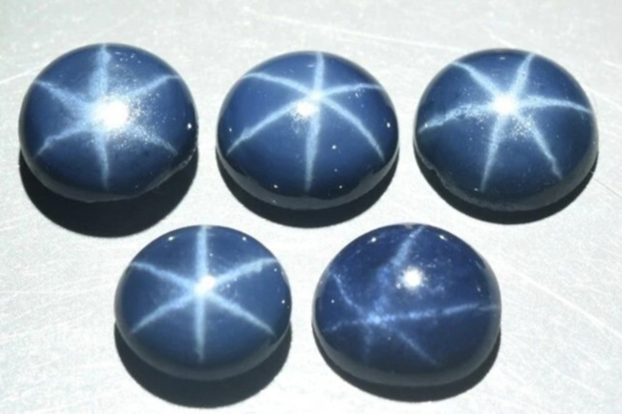 【5石】 約5mm ラウンド 綺麗な6レイ☆彡 天然 スターサファイア ルース カボション|タイ チャンタブリー産