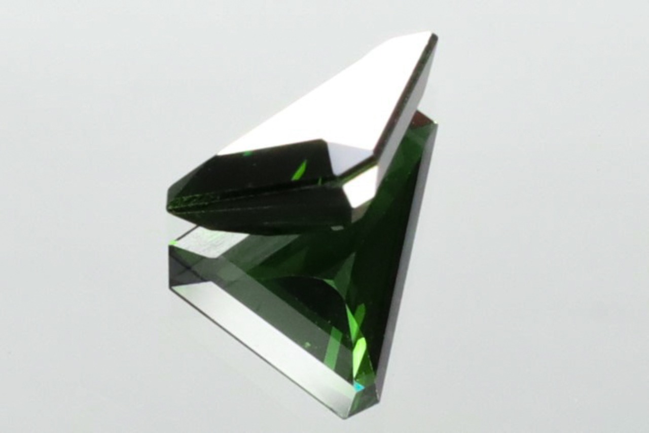 タンザニア産のクロムトルマリンは、その鮮やかな深緑色と高い透明度から、世界中のコレクターに珍重されています。特に、タンザニアのマニャラ州やルウェグ地帯などの鉱床は、地質的に古い変成岩帯に位置し、クロムやバナジウムといった発色要因を豊富に含むことで知られています。こうした地質環境の中で形成されるクロムトルマリンは、発色が非常に強く、通常光下では2枚目の画像のような感じにも見えますがダークなグリーンの色味がカッコ良く、光源にかざすと4&5枚目みたいなとても綺麗な色味が見られ、手持ちライトをあてると7枚目の画像のような、綺麗な明るいグリーンフラッシュが幾つも見られます。
