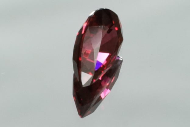 光源との角度によってブラックレッドの色調の中、VVSクラリティの美しいピンキッシュレッドの輝きみられます。