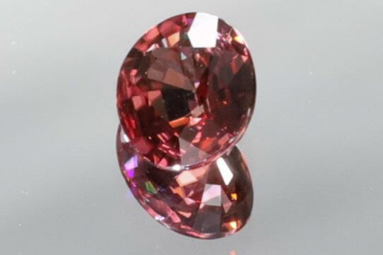 『イリディセント・フラッシュ☆彡』VVSジルコンの中のレアタイプ パープリッシュオレンジピンク 天然 ジルコン 1.20ct非加熱 7 x 6mm オーバル|タンザニア産