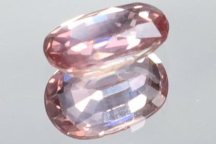 10倍ルーペでは少しダメージが見られるものの、通常光下でもサファイアの中ではパパラチアの次に希少とされているクリアーなピンキッシュパープルの美しい色味の中、明るいピンクの輝きが見られ、手持ちライトをあてると4枚目の画像のような美しい輝きが見られ、画像にはありませんがブラックライトを使用すると派手ではないものの赤い綺麗な蛍光美が見られます。