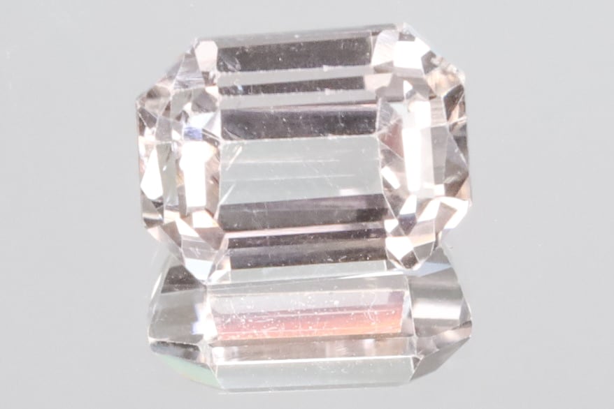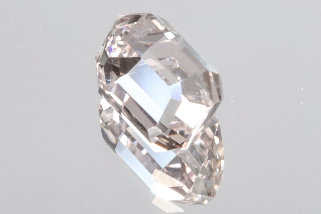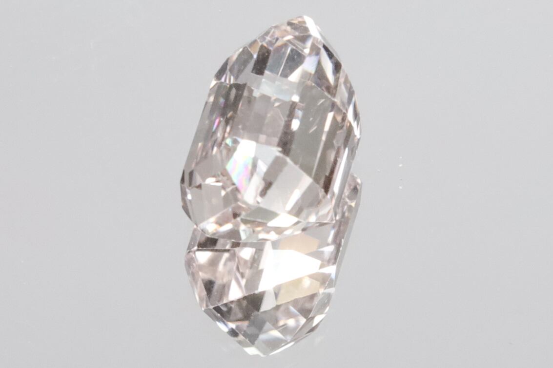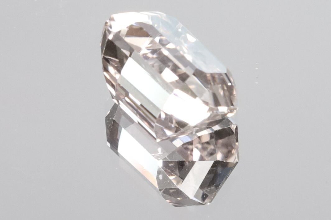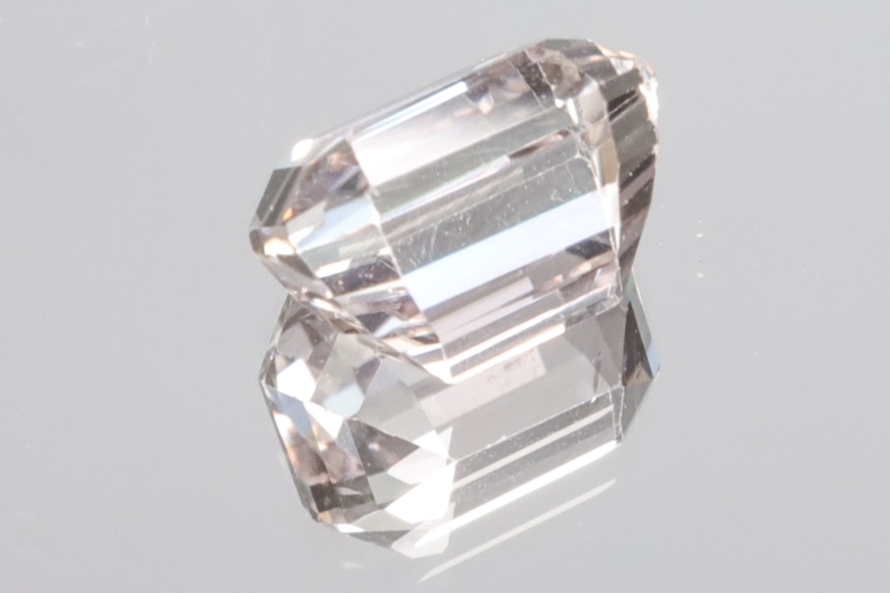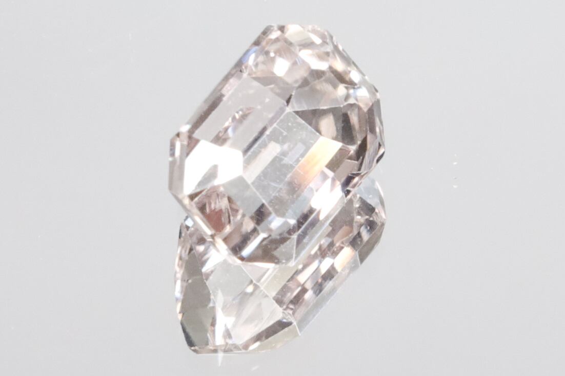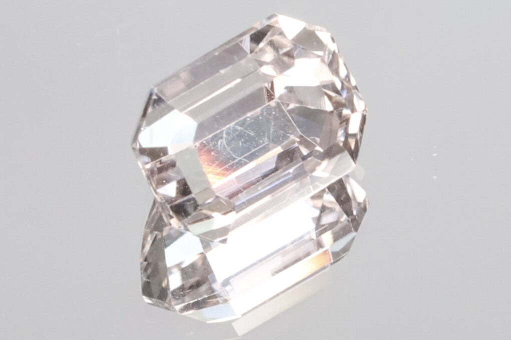 画像にありますようにチップ(4枚目画像の手前側の角)やダメージ(6枚目画像のミラー側)などが少しありますが、それらダメージ以外はVVSクラリティの美術品のような美しさを持ったルースで、オレンジッシュピンクの透き通った輝きがとても綺麗です。
