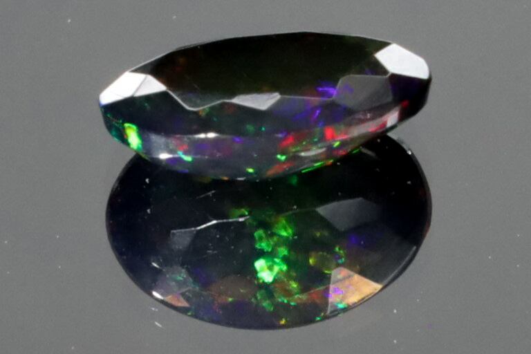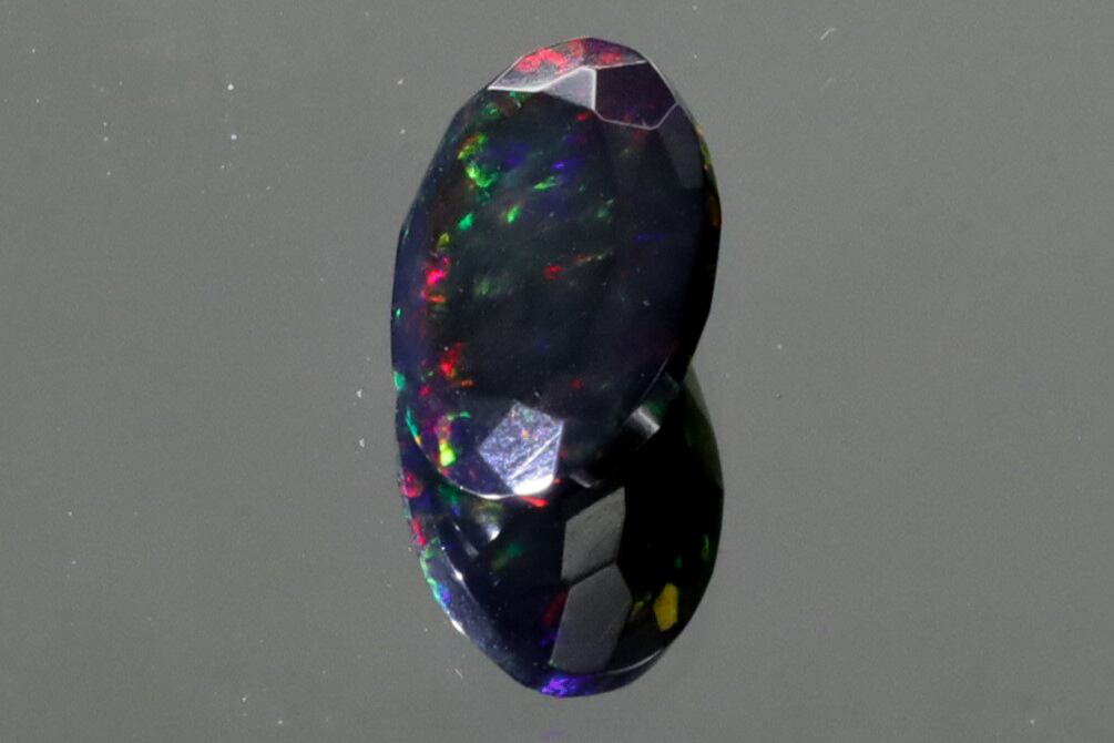 この強烈な遊色の具体的なメカニズムは今も完全には解明されてはいないそうですが、一般的にはオパール内に存在する微小なシリカ球などの結晶構造が、光を波長ごとに異なる角度で反射・屈折することがその大きな理由とされています。