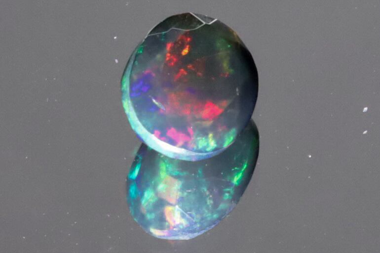 この強烈な遊色の具体的なメカニズムは今も完全には解明されてはいないそうですが、一般的にはオパール内に存在する微小なシリカ球などの結晶構造が、光を波長ごとに異なる角度で反射・屈折することがその大きな理由とされています。