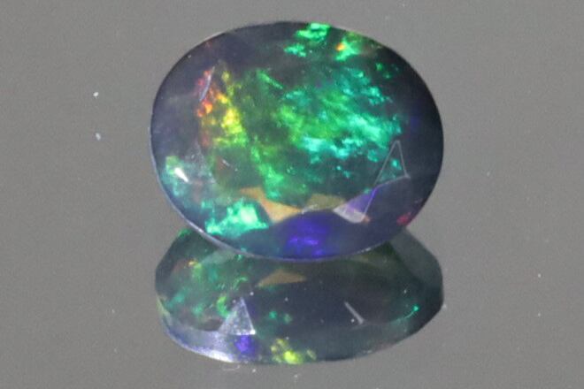 ネオン・エレクトリック・レインボー・フラッシュ!! 1.20ct 天然 エチオピアン ブラック オパール 8.5 x 7mm |エチオピア産