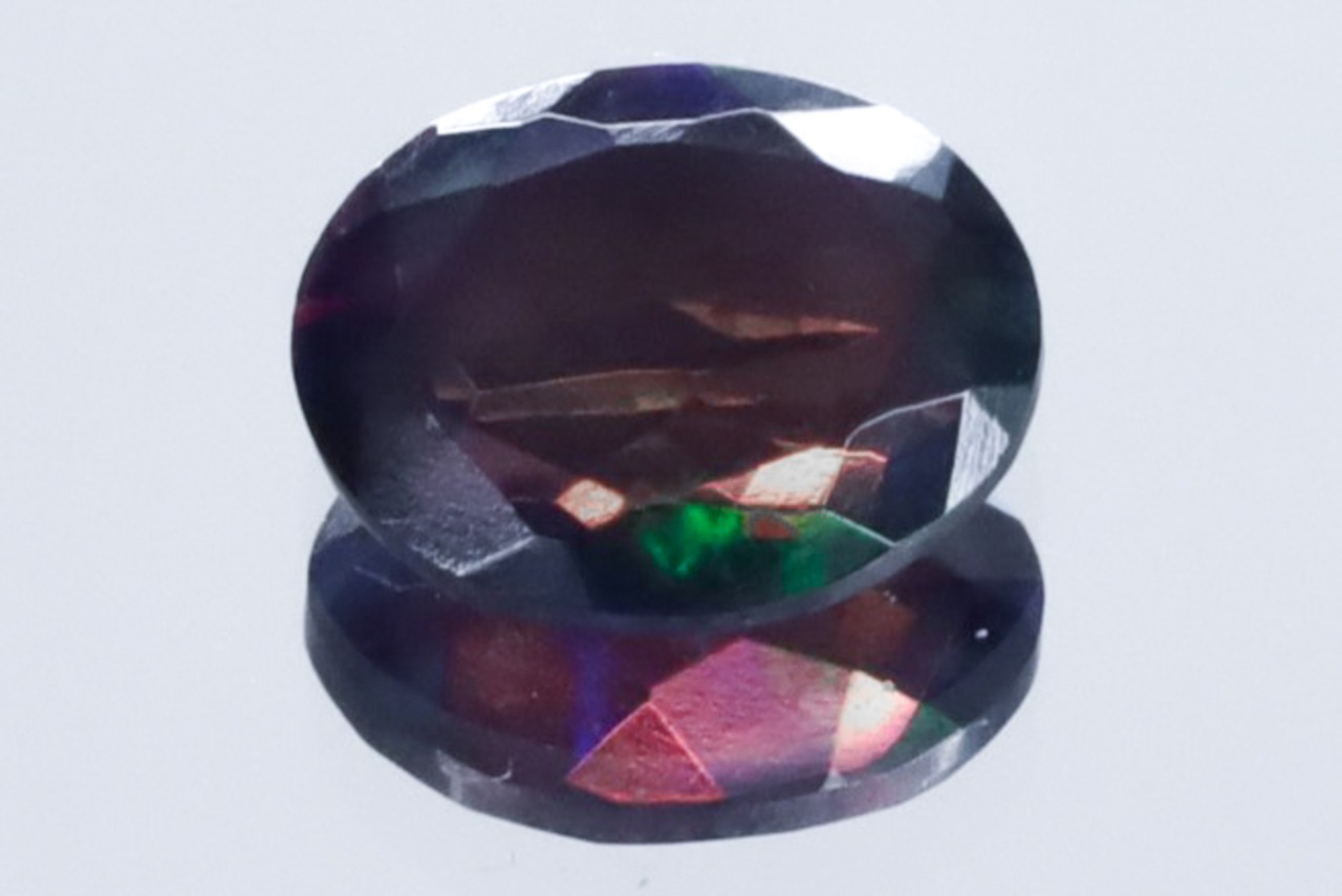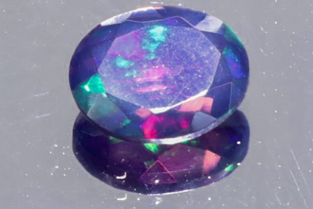 この強烈な遊色の具体的なメカニズムは今も完全には解明されてはいないそうですが、一般的にはオパール内に存在する微小なシリカ球などの結晶構造が、光を波長ごとに異なる角度で反射・屈折することがその大きな理由とされています。