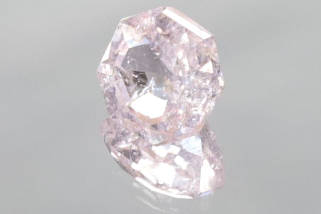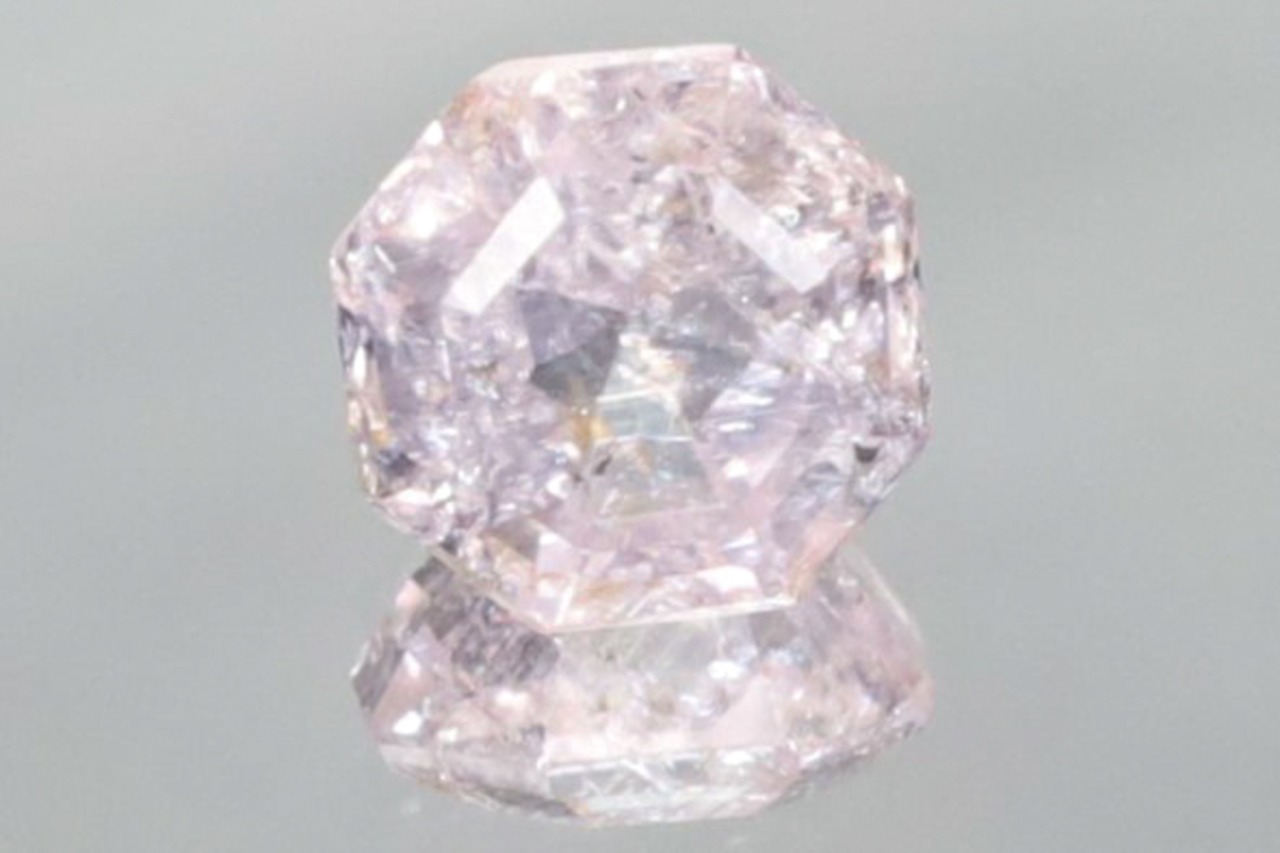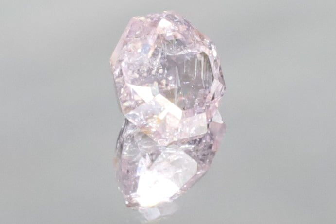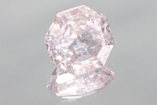 クラックなどがありますが、直ぐに壊れるようなものではなく、肉眼では、むしろそれらがキラキラ感を増し、透明感の中、明るい綺麗なライトパープリッシュピンクの耀きをお楽しみいただけます。