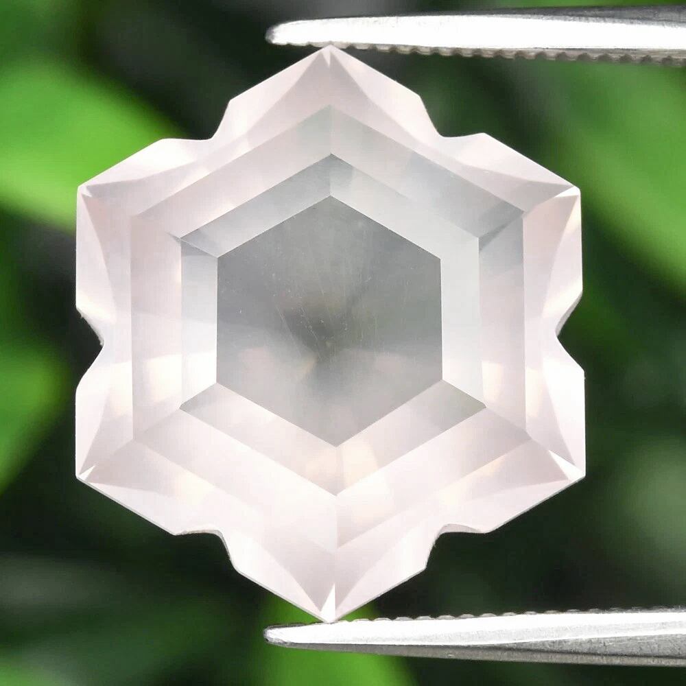 ローズクォーツは鉱物的にどうしても半透明になってしまいますが、むしろそれは、ローズクォーツのみが持つ、ほのぼのとした柔らかな魅力で、半透明な事を除くとVVSクラリティの結晶で、実際は画像よりも透明感もあり、優しい色味の輝きを美術品のようなシェイプでお楽しみいただけます。