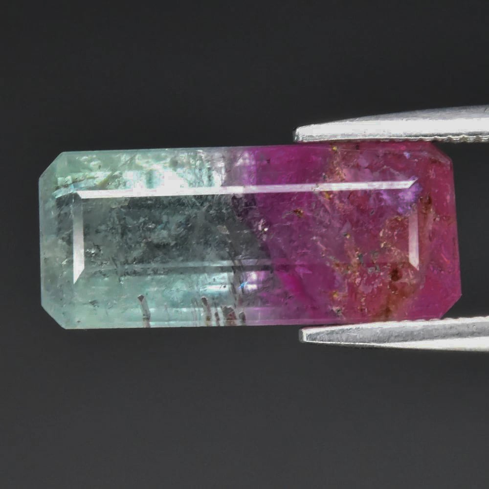 バイカラーのトルマリンは環境の劇的な変化によって生じることから鉱物的に通常はインクルージョンやクラックなどを含むことが殆どで、コチラも同様に、肉眼でもそれらを確認できますが、直ぐに壊れるようなものではなく、