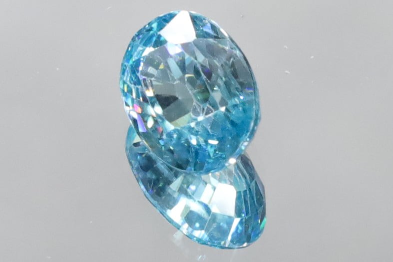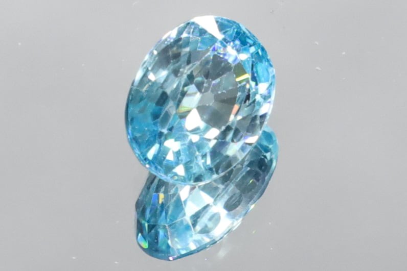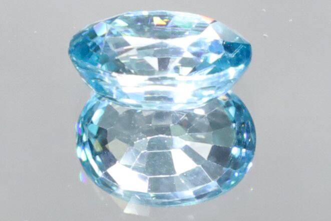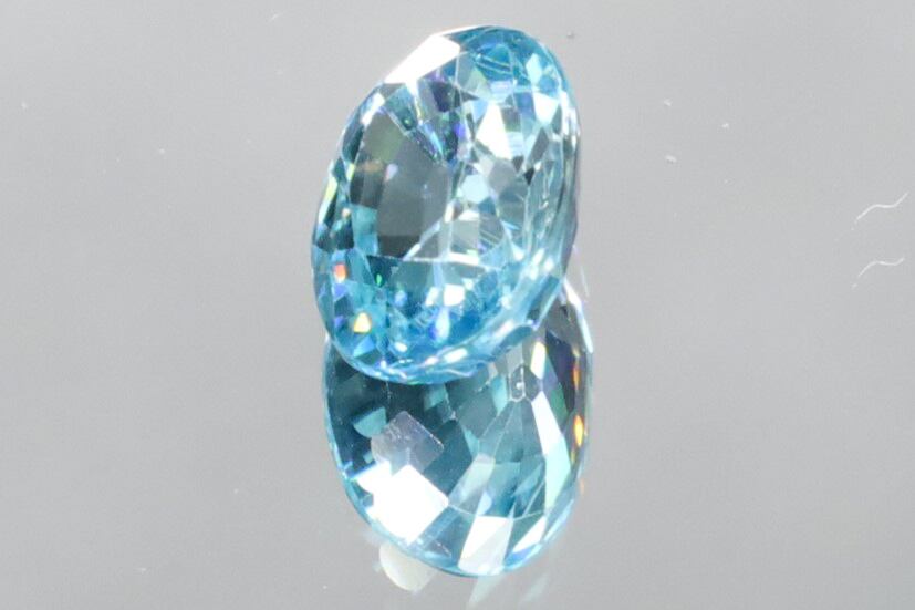 カンボジア産のブルージルコンはカットによって屈折率が引き立ち、まるでダイヤモンドのような煌めきを放つことから、「天然石の中で最も強い輝きをもつ石のひとつ」とも称されています。