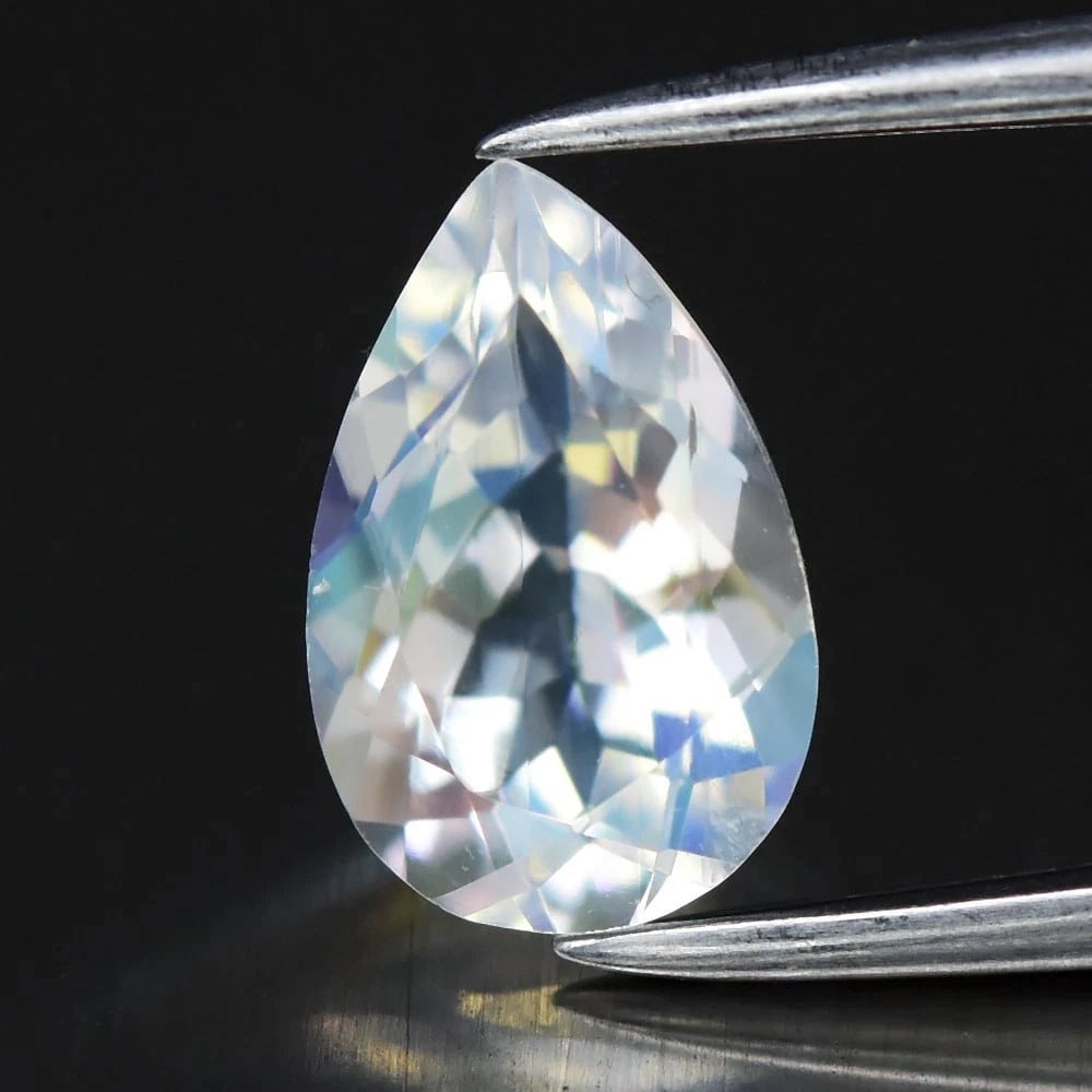 VVS 美しい透明感&とても綺麗なレインボーシラー 天然 ムーンストーン 0.84ct ルース 7.8 x 5.0mm ペアシェイプ | アフリカ産