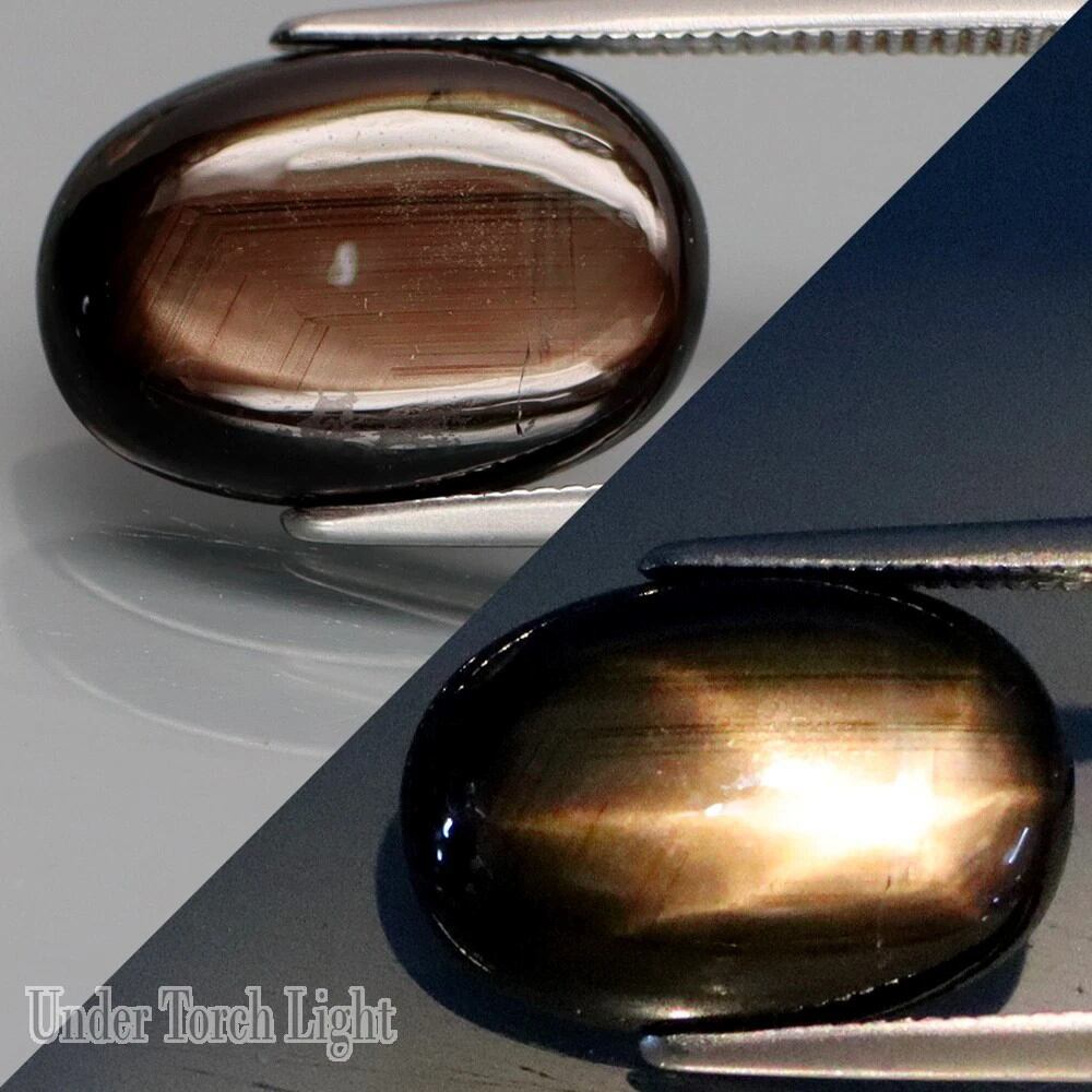 そんなコチラ、僅かなキズやクラックなどのダメージがあり、裏面は3枚目の画像のような感じですが、直ぐに壊れるようなものではなく、通常の光の色味は2枚目のような感じで通常光下でも綺麗な光沢の中に少しレイが見られ、手持ちライトをあてると画像や動画のようなコランダム特有の結晶構造模様の輝き&6レイが見られます。