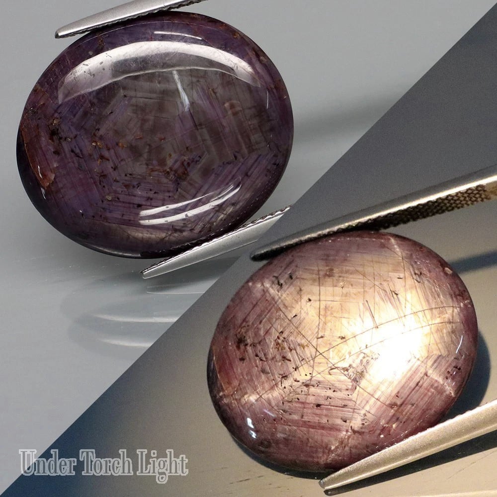 ご存じかもしれませんが、スターサファイアは、普通のサファイアと同じ鉱物であるコランダムから形成され、両者の化学的な組成は同じです。しかしスターサファイアは、内部に微小な針状の鉄やチタン酸化物の結晶が含まれていて、光がこの結晶に当たると星のような模様が現れます。この現象は「アスタリズム」と呼ばれています。