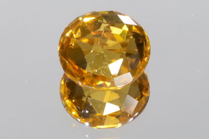 熟練の職人による両面チェッカーボード&ポリッシュによって、自然界の地熱と地圧の影響で形成された、もはや美術品的、オレンジ色の透明な金のような美しい輝きをVSクラリティでお楽しみいただけます!また、手持ちライトをあてると色調が異なるような美しいフラッシュが見られます。