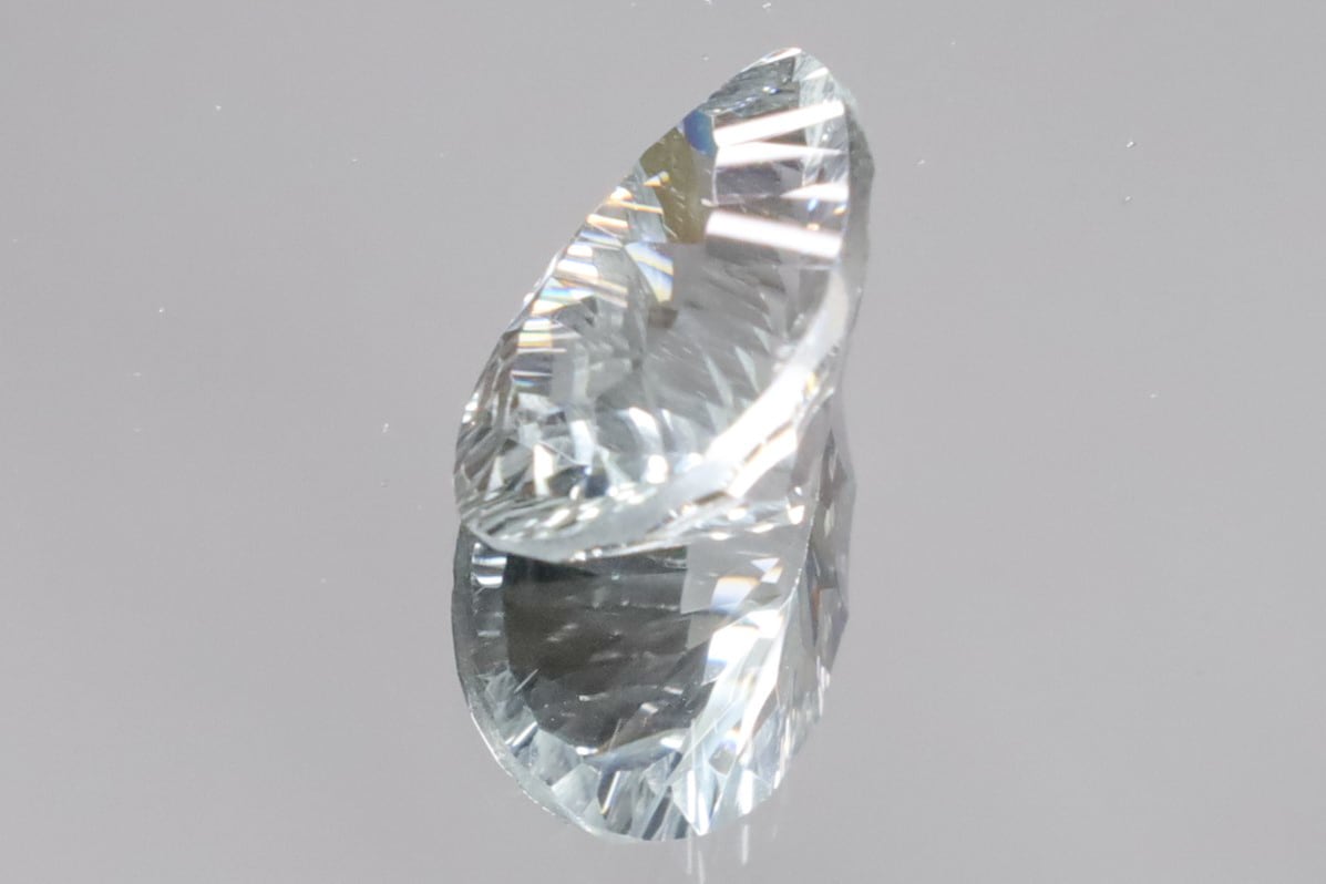 熟練の職人による、もはや美術品のようなコンケーブによる綺麗な、僅かにグリーンを感じるようなライトブルーの輝きをVVSクラリティでお楽しみいただけます!