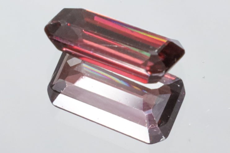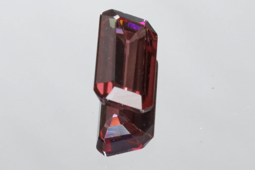 ルーペを使用したり、手持ちライトをあてると画像にあります細かなライン状のキズを確認できますが、通常光下でも7枚目の画像のような感じのワインレッドのような色味の輝きが美しく(角度によっては5&6枚目のようにも見えます)、手持ちライトを動かしながらあてると、メイン画像のような、綺麗な レインボーフラッシュが見られる時があります。