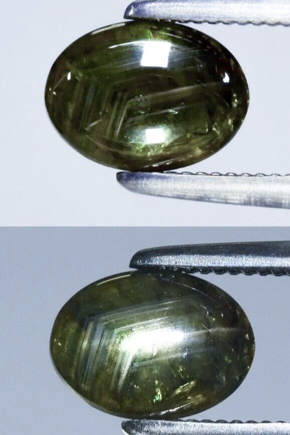 そんなコチラ、動画を良くみるとご確認いただけるかと思いますが、クラックなどのダメージがありますが直ぐに壊れるようなものではなく、実際は透明感ある結晶の中にコランダム特有の結晶構造をもった美しい個体で(多色のため少し実物の色味の忠実な再現が難しいのですが)、通常光下は画像の上や動画後半のような感じで、手持ちライトをあてると画像下や動画前半のような、いや実際はもっと綺麗な、レイと結晶構造由来の輝きが重なり、肉眼でも宇宙空間のような唯一無二の輝きをお楽しみいただけます。