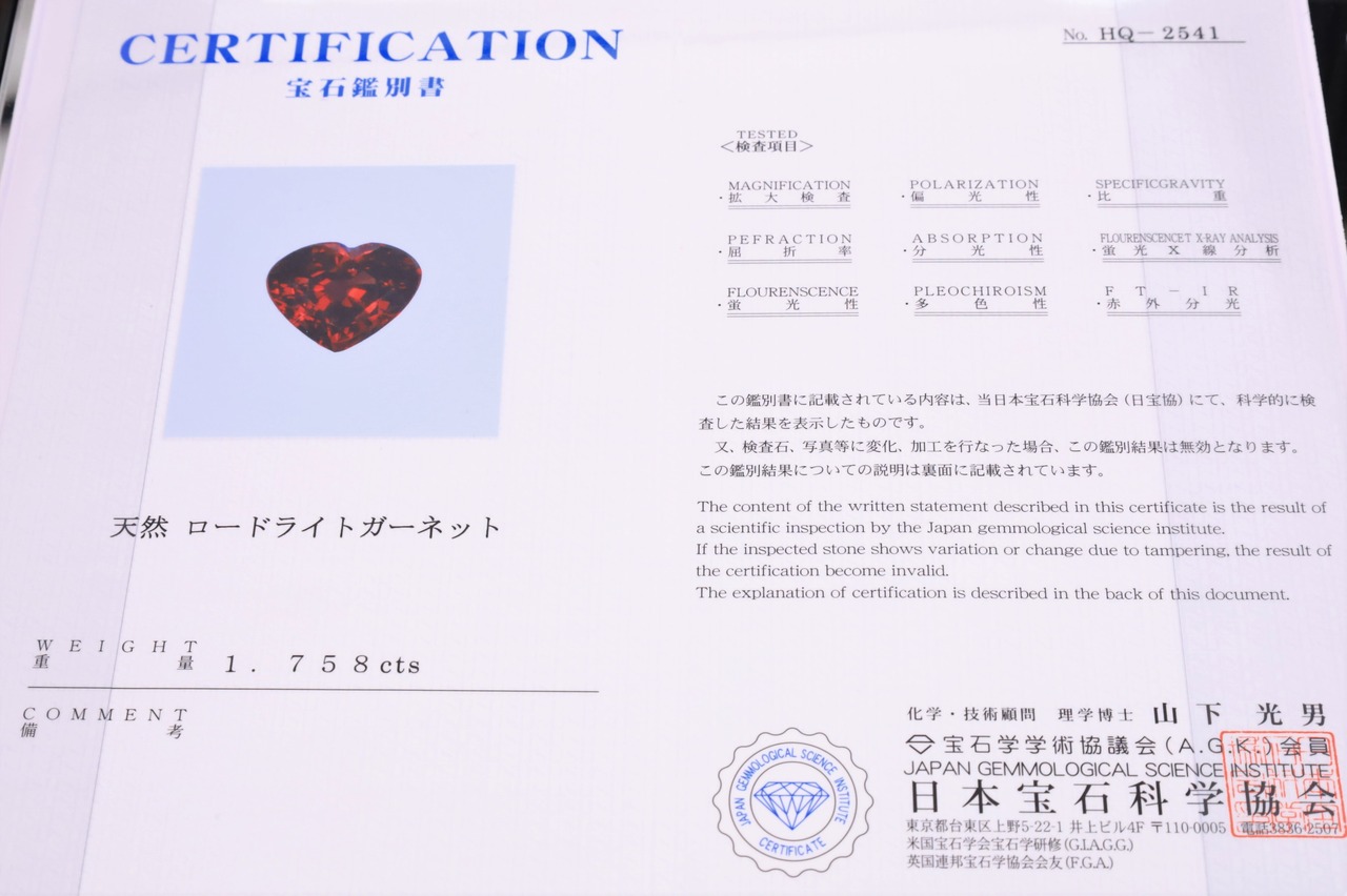 ※画像の鑑別書はロットのサイズ&シェイプ違いのもので付属しません。この個体のものが必要でしたら別途・写真付き鑑別書(3000円)、写真なしソーティング(2650円)で作成可能ですので(鑑別機関の込み具合により2週間程度かかる場合があります)、ご必要な場合、オプションよりお選び下さい。
