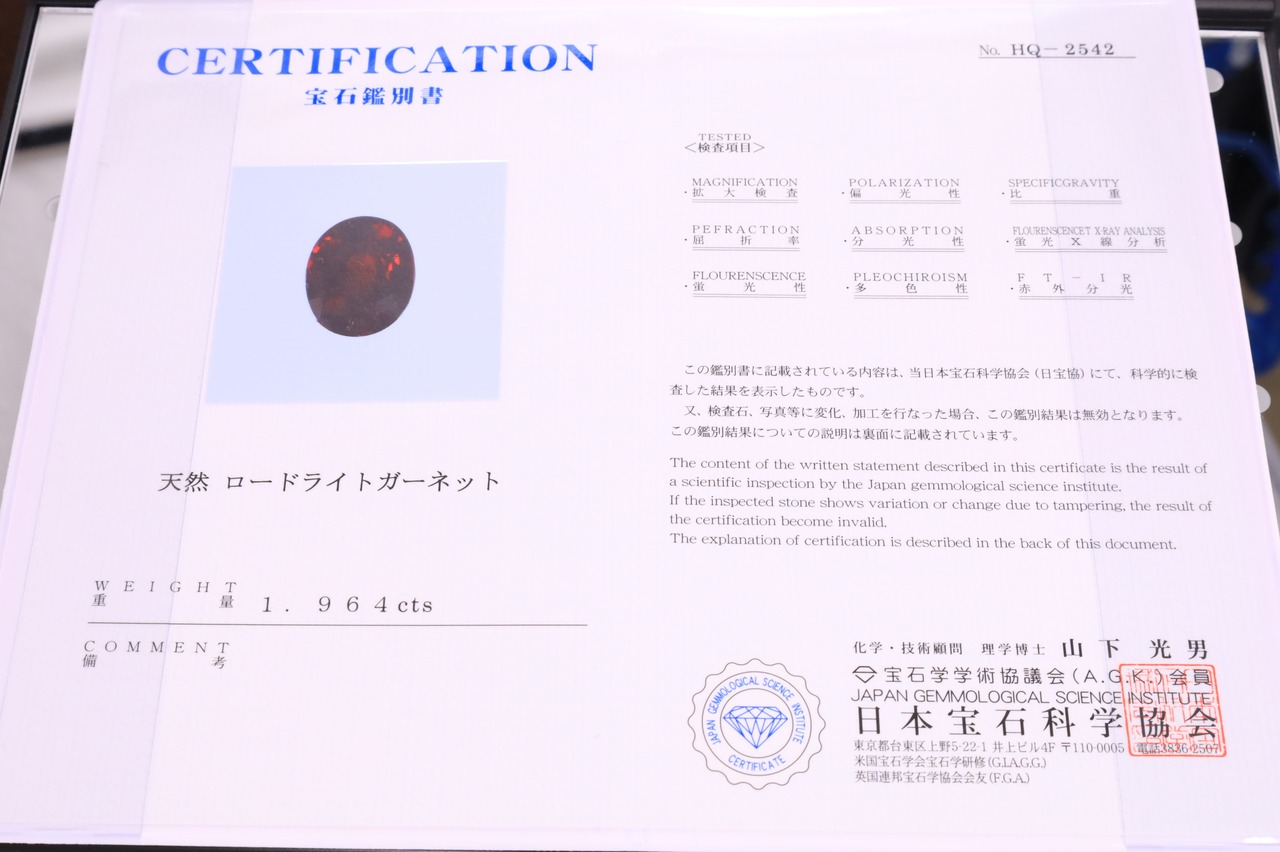 ※画像の鑑別書はロットのサイズ&シェイプ違いのもので付属しません。この個体のものが必要でしたら別途・写真付き鑑別書(3000円)、写真なしソーティング(2650円)で作成可能ですので(鑑別機関の込み具合により2週間程度かかる場合があります)、ご必要な場合、オプションよりお選び下さい。