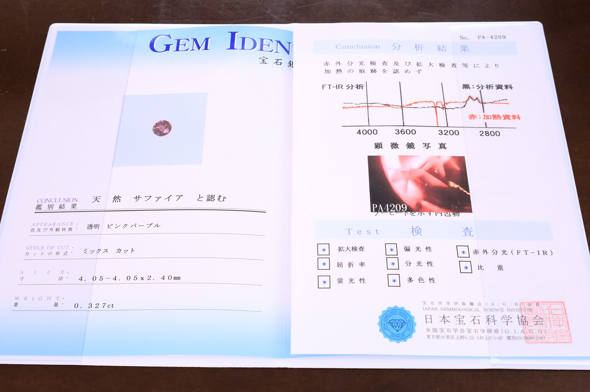 ※画像の鑑別書はロットのサイズ&シェイプ違いのもので付属しません。この個体のものが必要でしたら別途・加熱非加熱検査&写真付き鑑別書(5200円)、加熱非加熱検査&写真なしソーティング(3650円)で作成可能ですので、ご必要な場合はオプションよりお選び下さい。