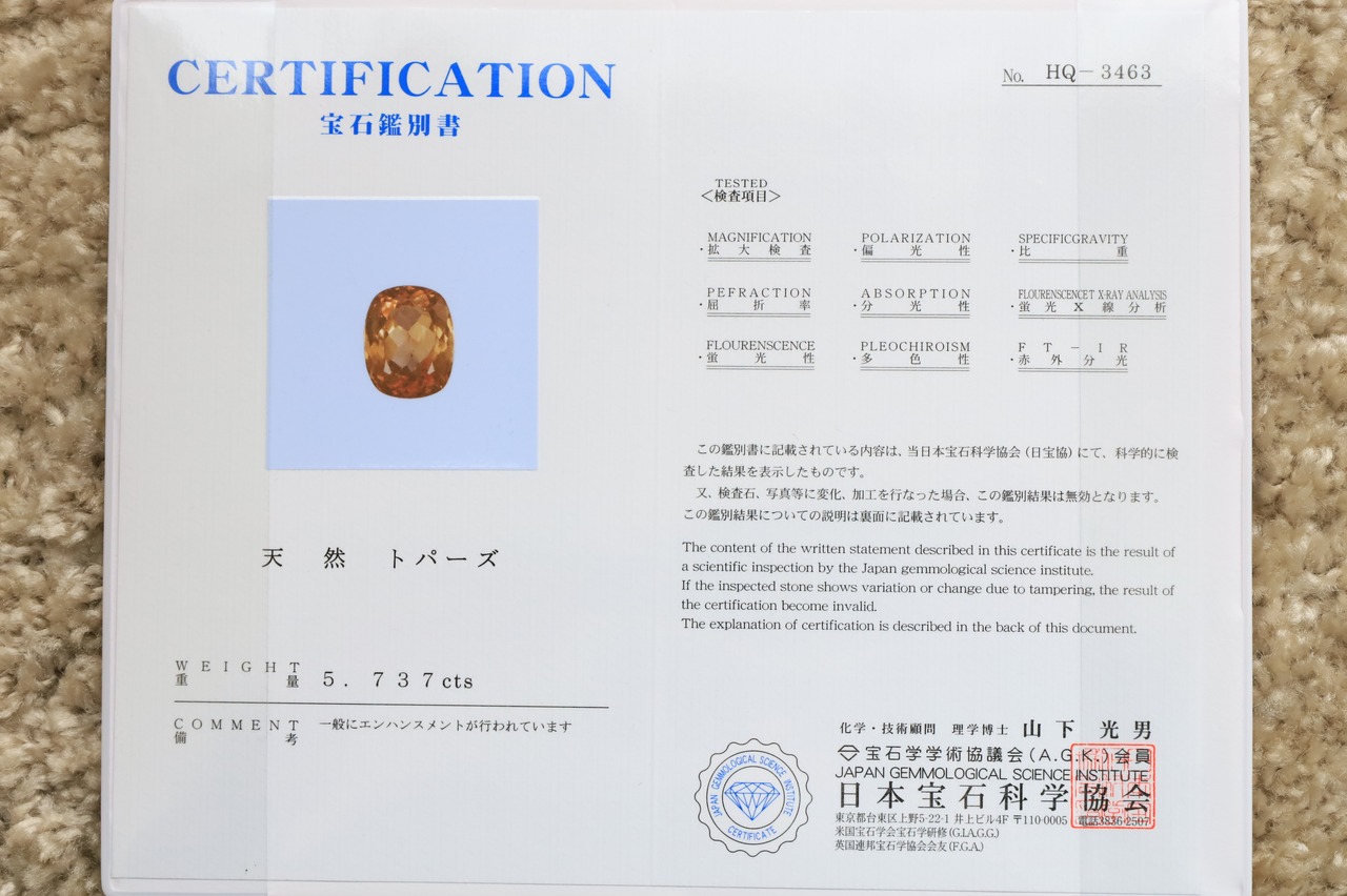 ※画像の鑑別書はこのロットのサイズ&シェイプ違いのもので付属しません。この個体のものが必要でしたら別途・写真付き鑑別書(3000円)、写真なしソーティング(2650円)で作成可能ですので、ご必要な場合はオプションよりお選び下さい。[鑑別機関の混雑具合によっては2週間程お時間を頂く場合がございます。]