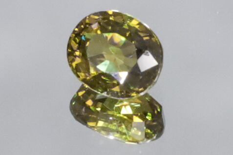 色調が異なる美しいラスター☆ VS 天然 アンドラダイト-グロッシュラーライトガーネット 0.89ct 「希少な爽やか美色」 ルース オーバル 5.8 x 5.0 mm「鑑別済みロット」